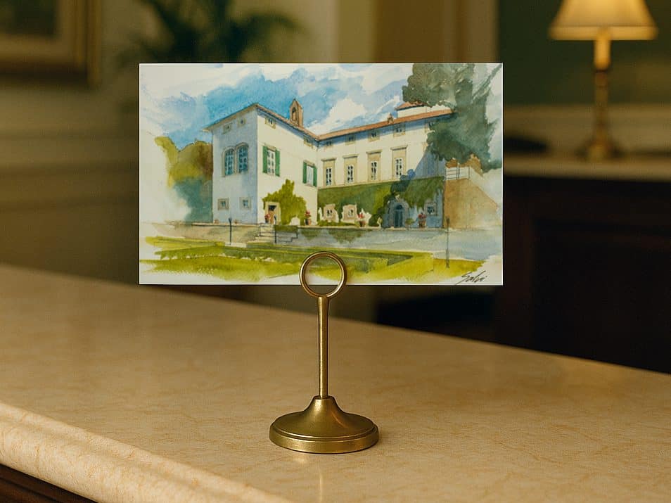 Elegant watercolor illustrations for boutique hotels, villas, and historic guesthouses.
